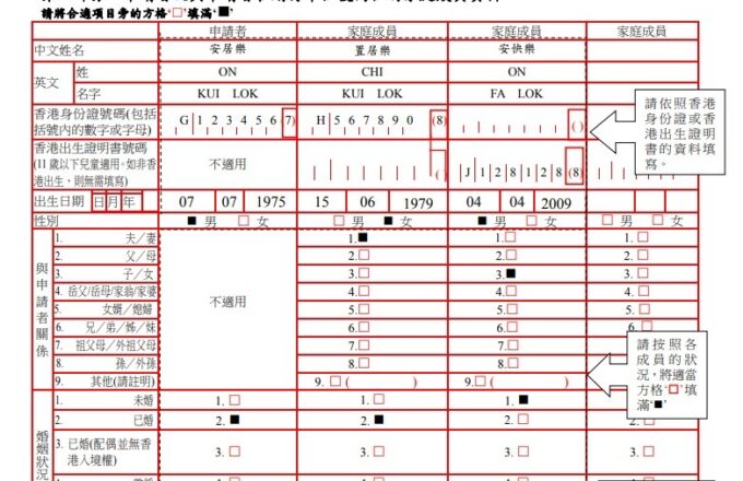 ③ 不可以使用「祖父母加孫兒」的名義入表申請,除非中間一代已經不在,否則會在攪珠後的審查階段被取消資格。